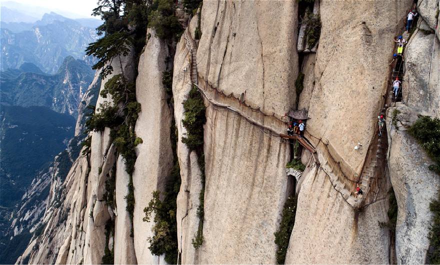 栈道,又称为阁道、栈阁。修栈道是在河岸崖壁上凿洞架木,再铺上木板,上走行人车马,下是激流险滩。