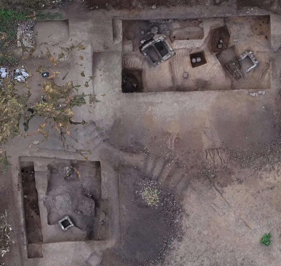 发掘的同时,本年度重点对发掘区北部进行局部考古勘探工作,勘探面积约为2万平方米,发现确认各类墓葬180余座,初步了解了墓葬分布情况及范围所至。