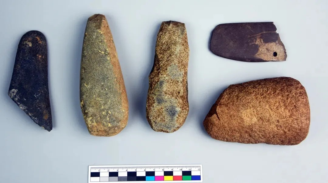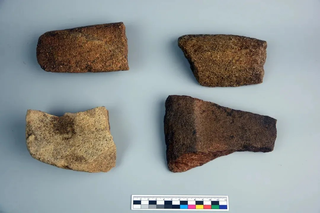 F4位于第Ⅱ发掘区,打破生土。房址未发掘完毕,仅局部进行探沟发掘至房址底部生土地面,房址东西宽约6.39米、局部探沟宽1.25米、深1米。房址西侧靠近西墙处存有一条天然石块堆砌的石条带,房址中部有灶址,灶址东侧有4个柱洞。