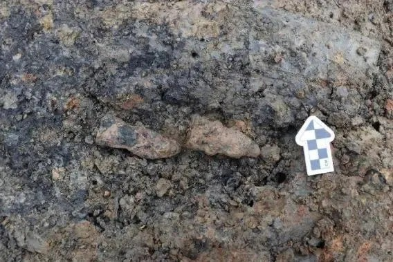 图8 灰坑(H44)出土的纪年陶范(范背朝上)