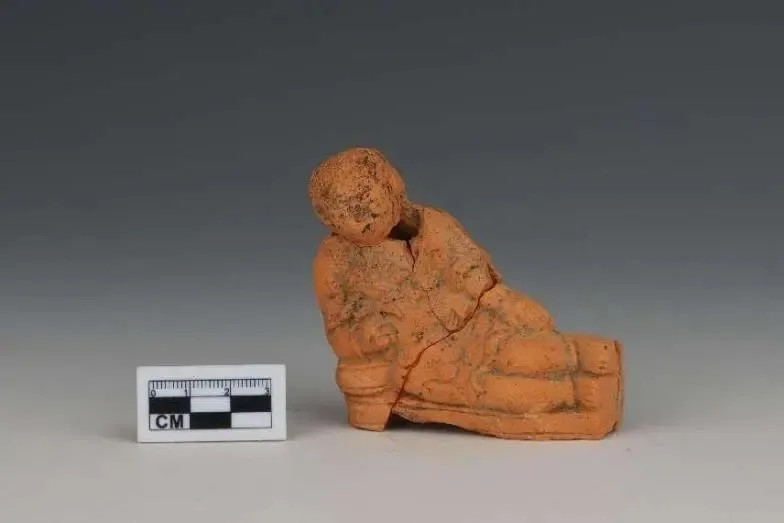本次发掘出土的陶塑数量庞大,造型各异、制工精湛。多为人物类塑像,兼有少量建筑、器皿及神兽塑像,均系前后合范摁压制成,小型泥塑的两侧均留有范线,底部还留有合范摁压时留下的内凹状指纹印。其人物类塑像多为世俗化形象,可辨的人物造型有八仙、和合二仙、弥勒、观音及童子等(图5),部分泥塑可能与文献中记载的“磨喝乐”有关。磨喝乐,亦称“摩睺罗”,即以童子等世俗风物为题材的泥塑儿童玩具。据记载,苏州泥塑在宋代就已非常兴盛,南宋陈元靓在《岁时广记》曾写道:“(磨喝乐)南人目为巧儿,今行在中瓦子、后市街、众安桥卖磨喝乐。惟苏州极巧,为天下第一”[2];《方舆胜览》亦称:“(平江府)七夕摩睺罗:土人工于泥塑,所造摩睺罗尤为精巧[3]”。